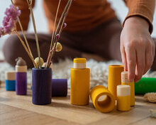 Met deze set leren kindjes o.a. de kleuren kennen, op kleur ordenen/sorteren en verder bedenkt jouw kindje het zelf wel! Bij de set wordt een katoenen zak geleverd om de set in te bewaren.